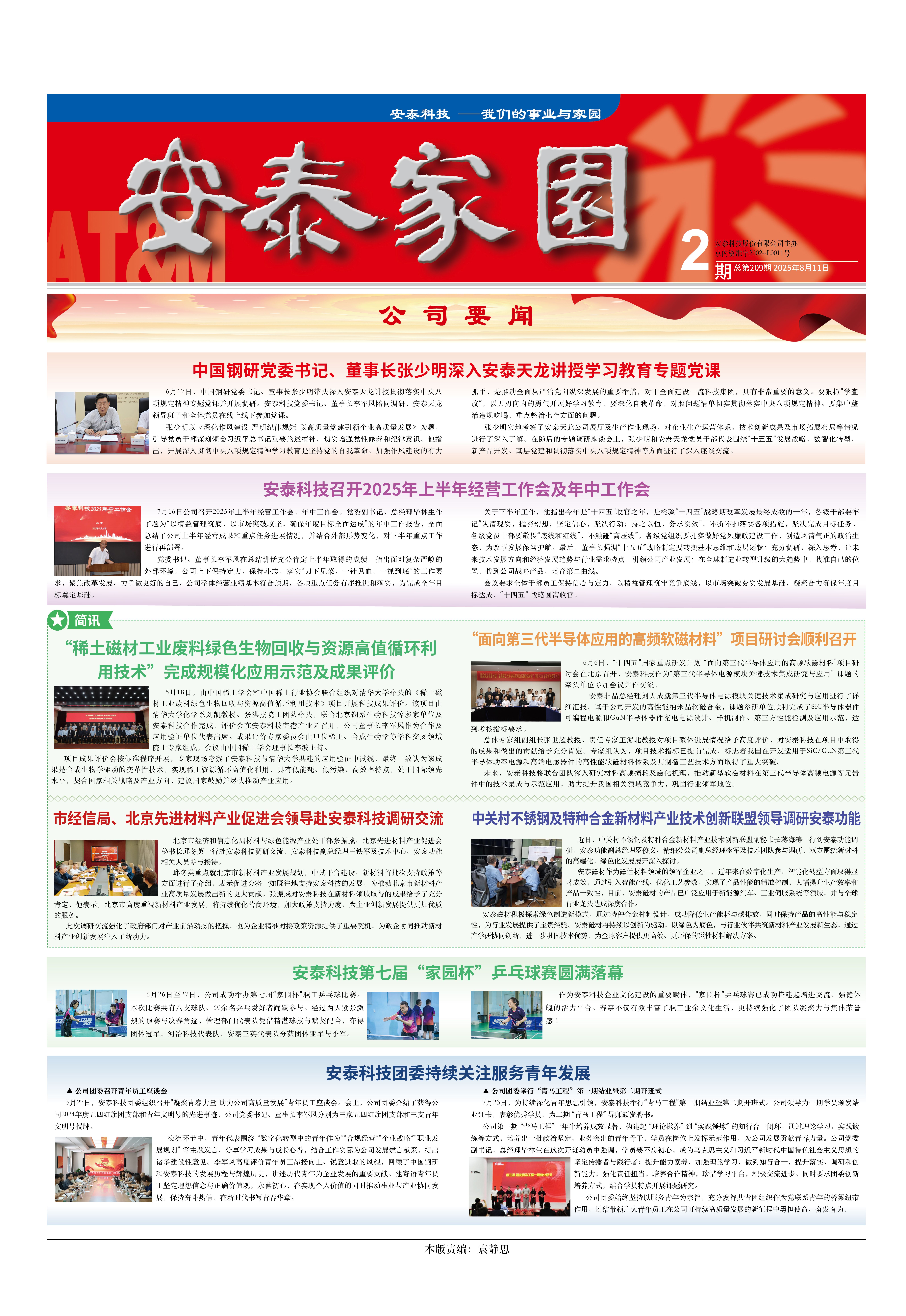 6月17日,中国钢研党委书记、董事长张少明带头深入安泰天龙讲授贯彻落实中央八项规定精神专题党课并开展调研。百盈体育党委书记、董事长李军风陪同调研,安泰天龙领导班子和全体党员在线上线下参加党课。